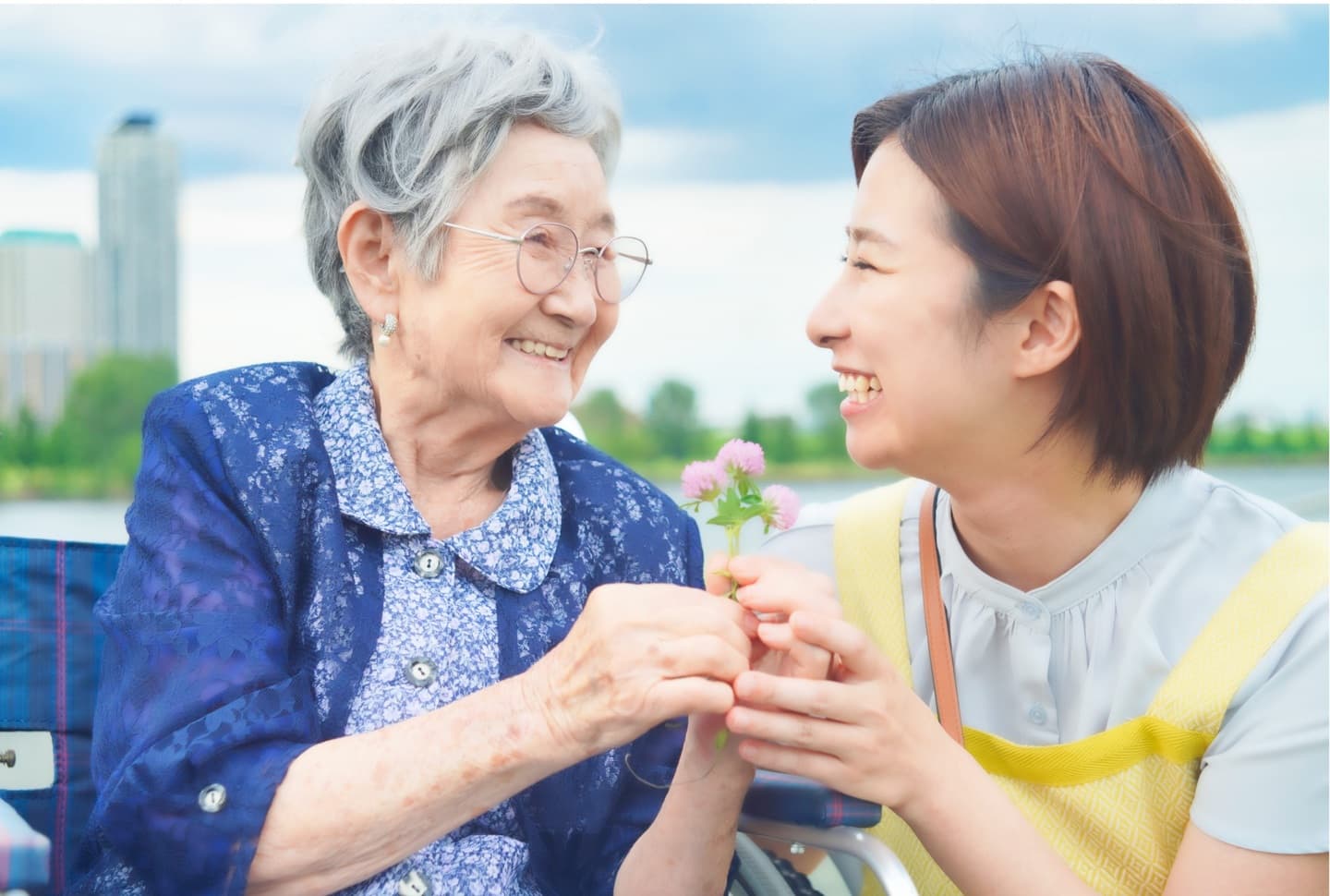 介護とは、加齢や病気などによって日常生活を営むことが困難な人に対して、家事、歩行、排せつ、入浴など通じて、身体的、精神的にも尊厳ある自立した生活が送れるように支援することです。